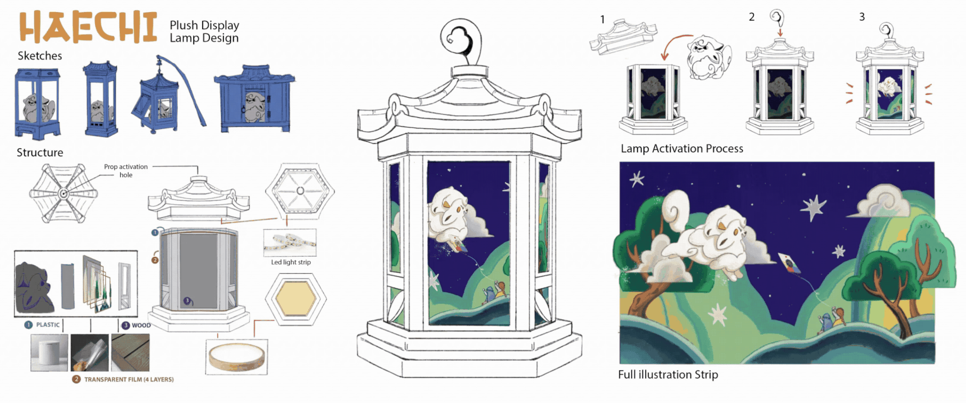 Korean fairytale-inspired plush concept design paired with a night light display option to guard children from bad nightmares